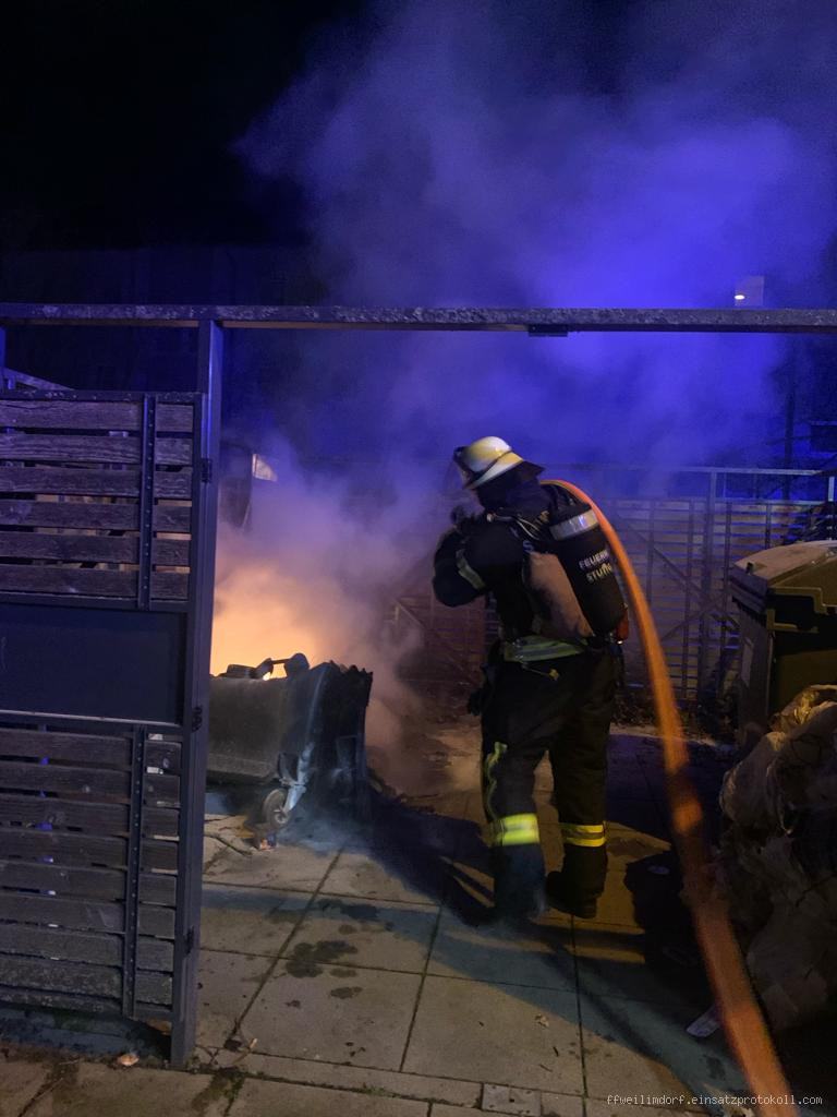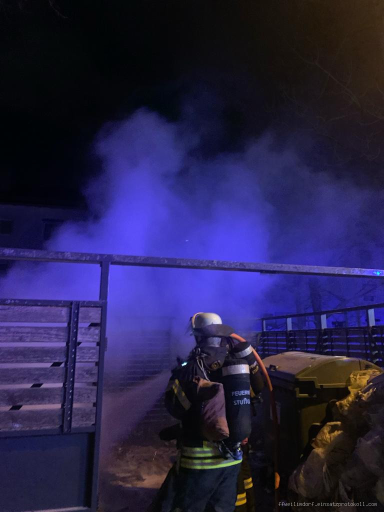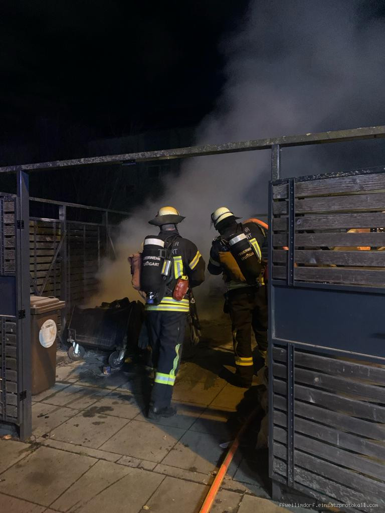 [si] Zum letzten Einsatz in dieser Nacht wurde ein HLF nach Feuerbach alarmiert. Dort wurde ein Brennender Mülleimer in einem Müllunterstand gemeldet. Bis zum Eintreffen der Feuerwehr versuchten Anwohner das Feuer einzudämmen. Beim Eintreffen stand noch eine Mülltonne und Müllreste in Brand. Mithilfe des Schnellangriffs konnte das Feuer abgelöscht werden. Abschließend wurde mittels der Wärmebildkamera in der Umgebung um den Brand nach erhöhten Temperaturen gesucht. Nachdem schließlich alles genügend heruntergekühlt wurde, konnte die gesamte Ausrüstung wieder zusammengepackt und der Einsatz abgeschlossen werden.