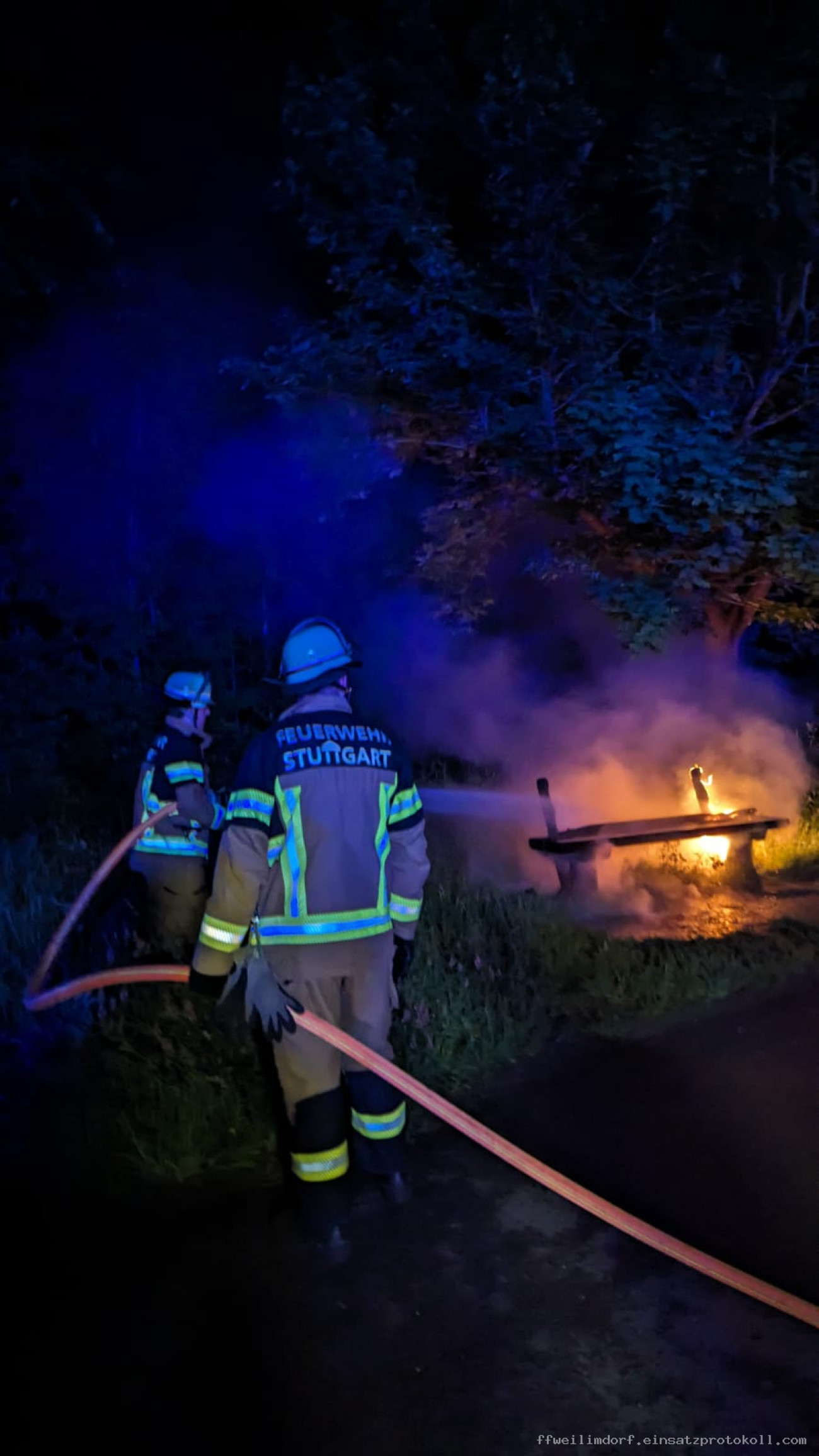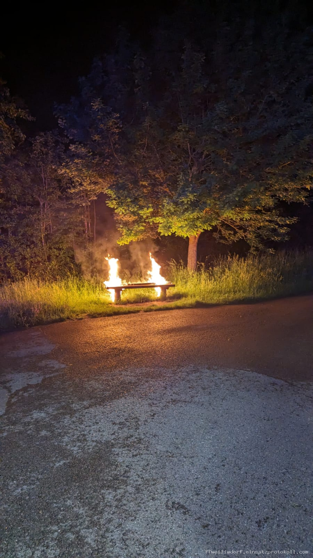 [si] Nachts wurde durch einen Fußgänger eine brennende Sitzbank gemeldet. Dank des Einweisers vor Ort konnte die Einsatzstelle zügig gefunden werden. Beim Eintreffen bestätigte sich die gemeldete Lage. Mittels des Schnellangriffs wurde die brennende Bank abgelöscht. Abschließend wurden alles nach Glutnestern abgesucht und Nachlöscharbeiten durchgeführt. Nach kurzer Zeit konnte die Feuerwehr den Einsatz beenden.