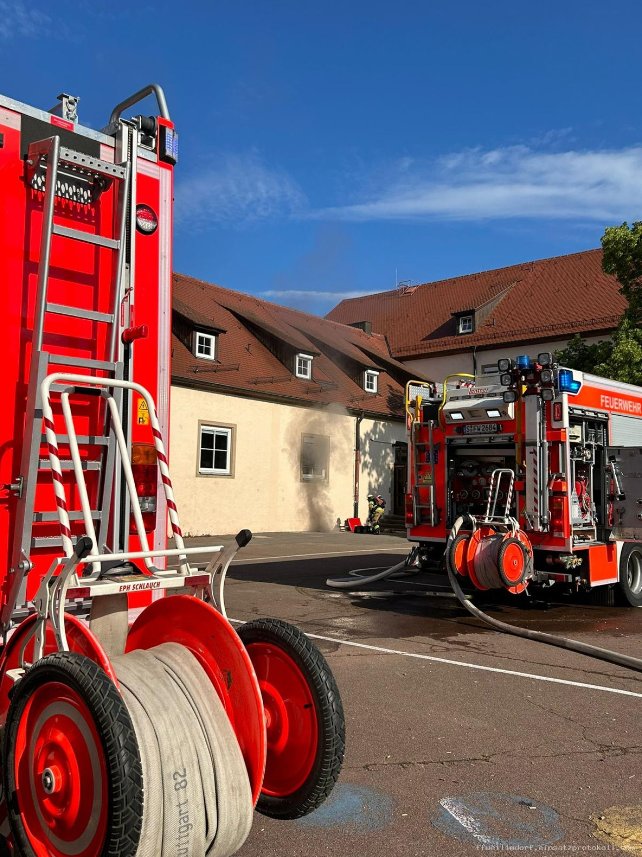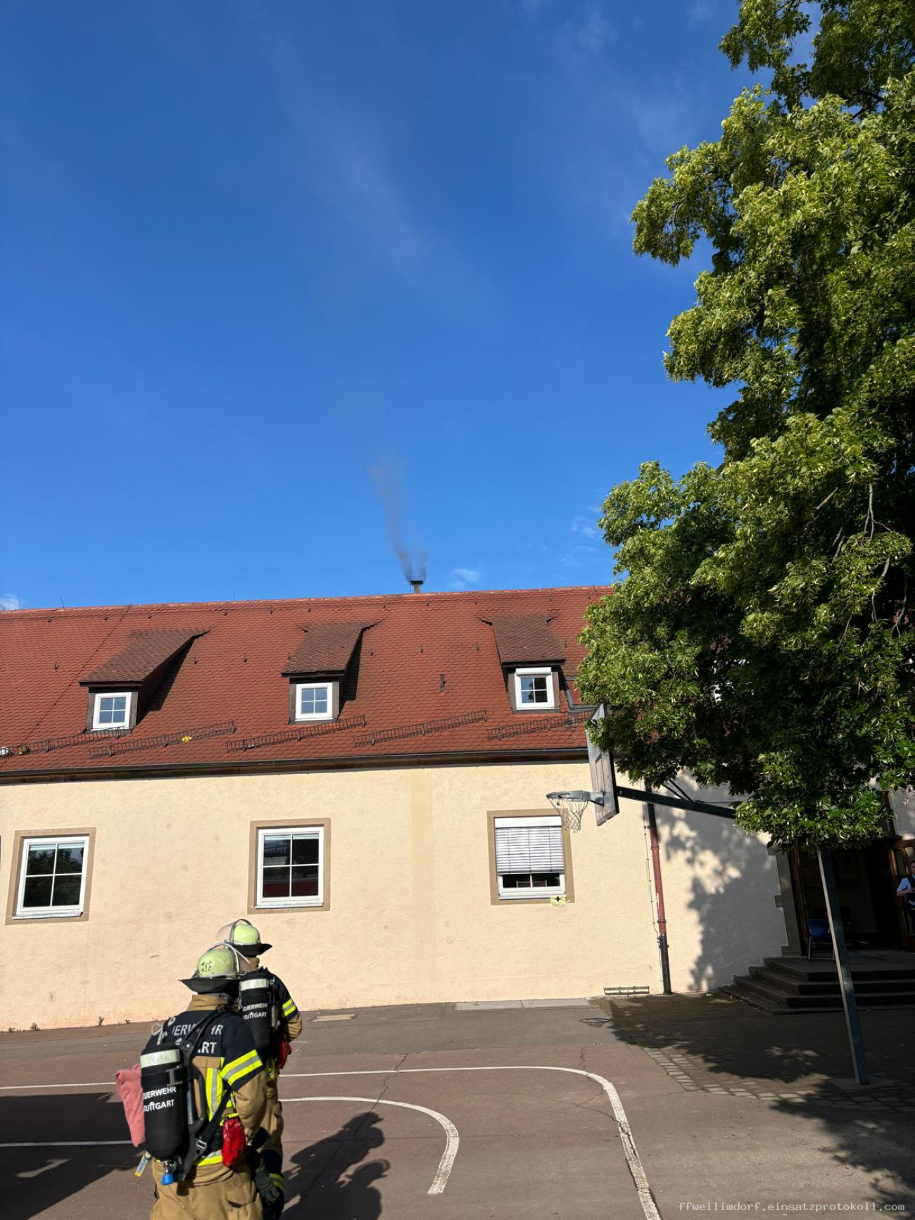 Die interne Brandmeldeanlage einer Schule in Weilimdorf löste gegen 08:15 Uhr einen Alarm aus. Die Schulleitung alarmierte die Feuerwehr. Zu diesem Zeitpunkt wurden die Schülerinnen und Schüler bereits aus dem Gebäude geleitet.