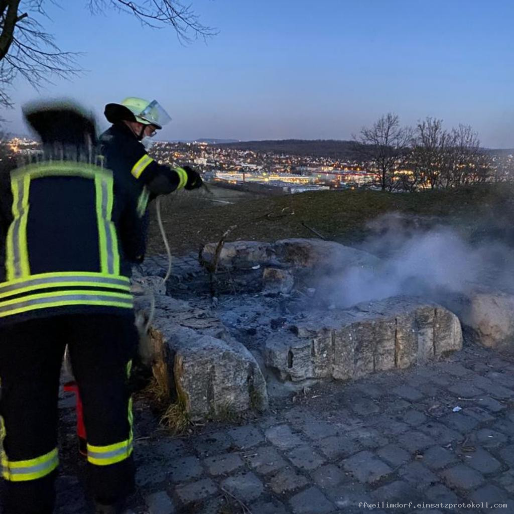 [si] Durch die Polizei wurde am Grillplatz auf dem Grünen Heiner ein unbeaufsichtigtes Grillfeuer gemeldet. Durch die Besatzung des ersteingetroffenen Weilimdorfer HLFs wurde die restliche Glut mithilfe der Kübelspritze abgelöscht. So konnten alle alarmierten Kräfte nach kürzester Zeit wieder einrücken.
